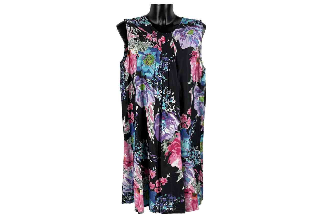 Abito in 100%cotone smanicato, ampio scollo e plissettato sul davanti.