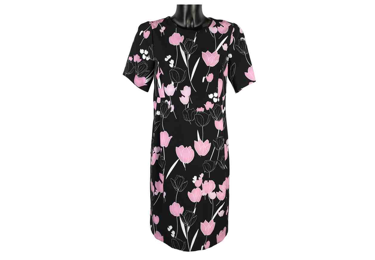 Abito con collo ampio e cerniera per indosso. Con 4 pence sul frontale per dare un movimento alla gonna.