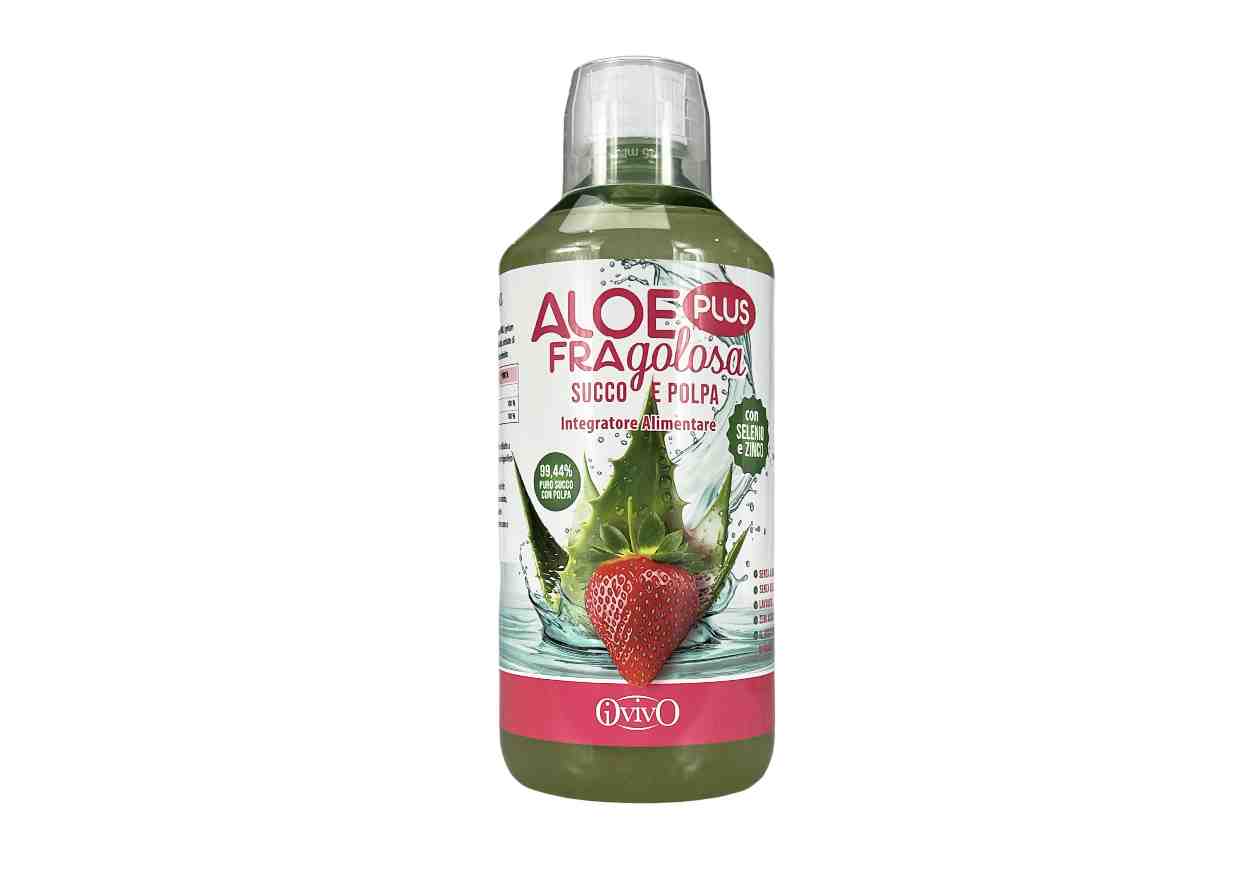 Aloe plus di IoVivo Fragolosa è un integratore alimentare a base di puro succo e polpa di aloe vera Barbadensis Miller senza acqua aggiunta al gusto fruttato di fragola. L’accurata lavorazione prevede che le foglie vengano selezionate, lavate e decorticate a mano per garantirne l’integrità. Viene utilizzata solo la parte interna e più carnosa delle foglie che viene estratta a freddo così da preservare inalterate le virtù dei componenti della pianta.