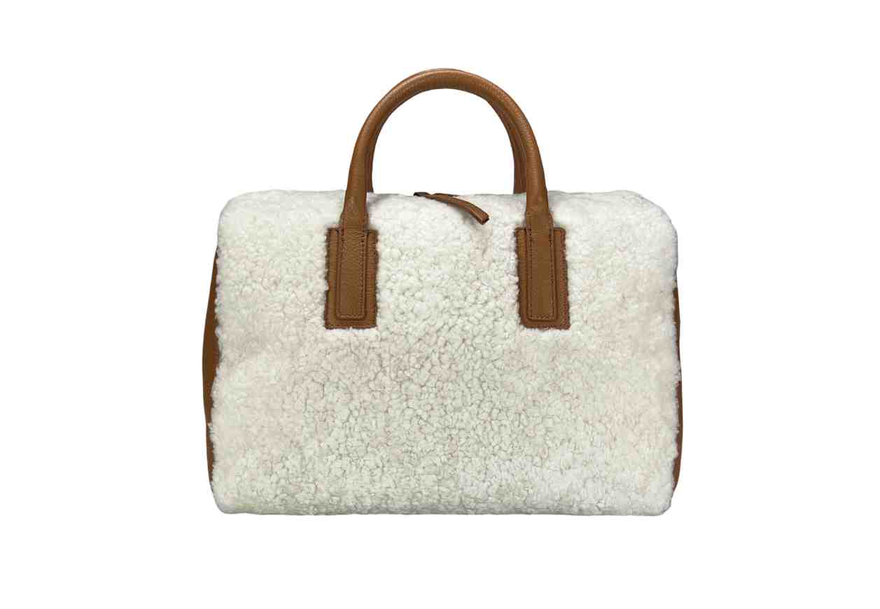 Bauletto in montone e pelle di vitello, manici, zip e tracolla.