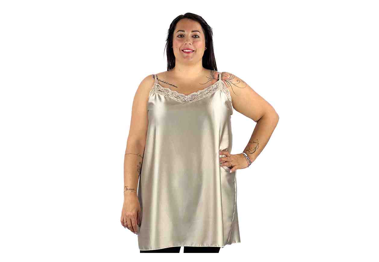 BEATRICE DE BLANCK Maxi canotta in simil raso, con pizzo su scollo e spalline regolabili, tinta unita.
