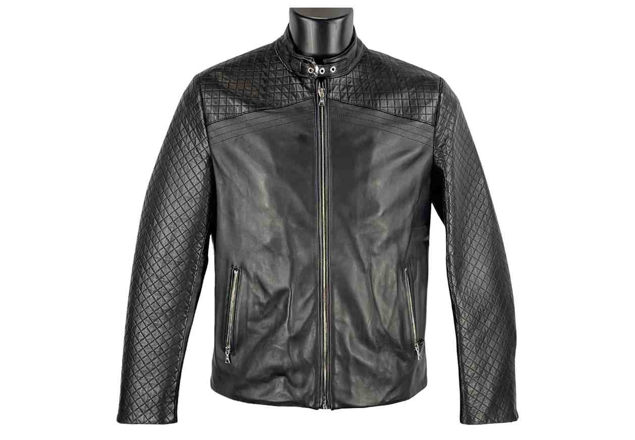 Biker in 100% pelle di ovino con lavorazione, full zip e tasche.