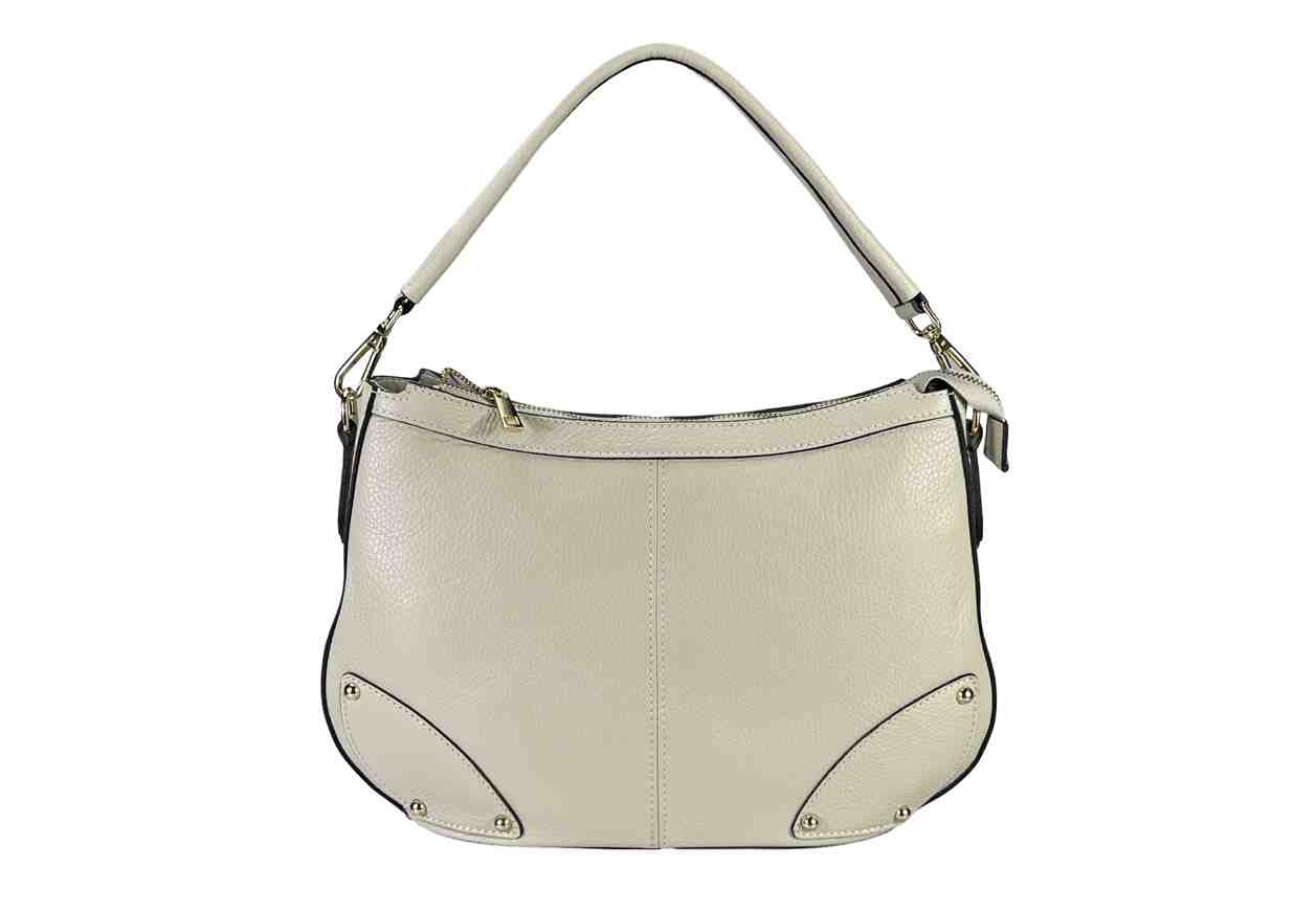Borsa a mano e spalla in 100% pelle di vitello pieno fiore, manico staccabile e tracolla.