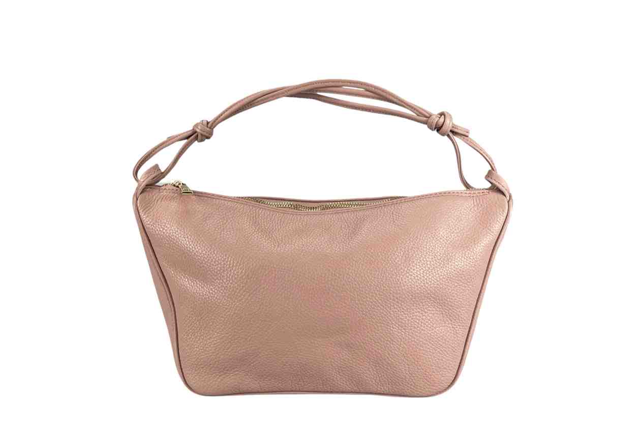 Borsa a spalla in 100% pelle di vitello con tracolla e chiusura a zip.