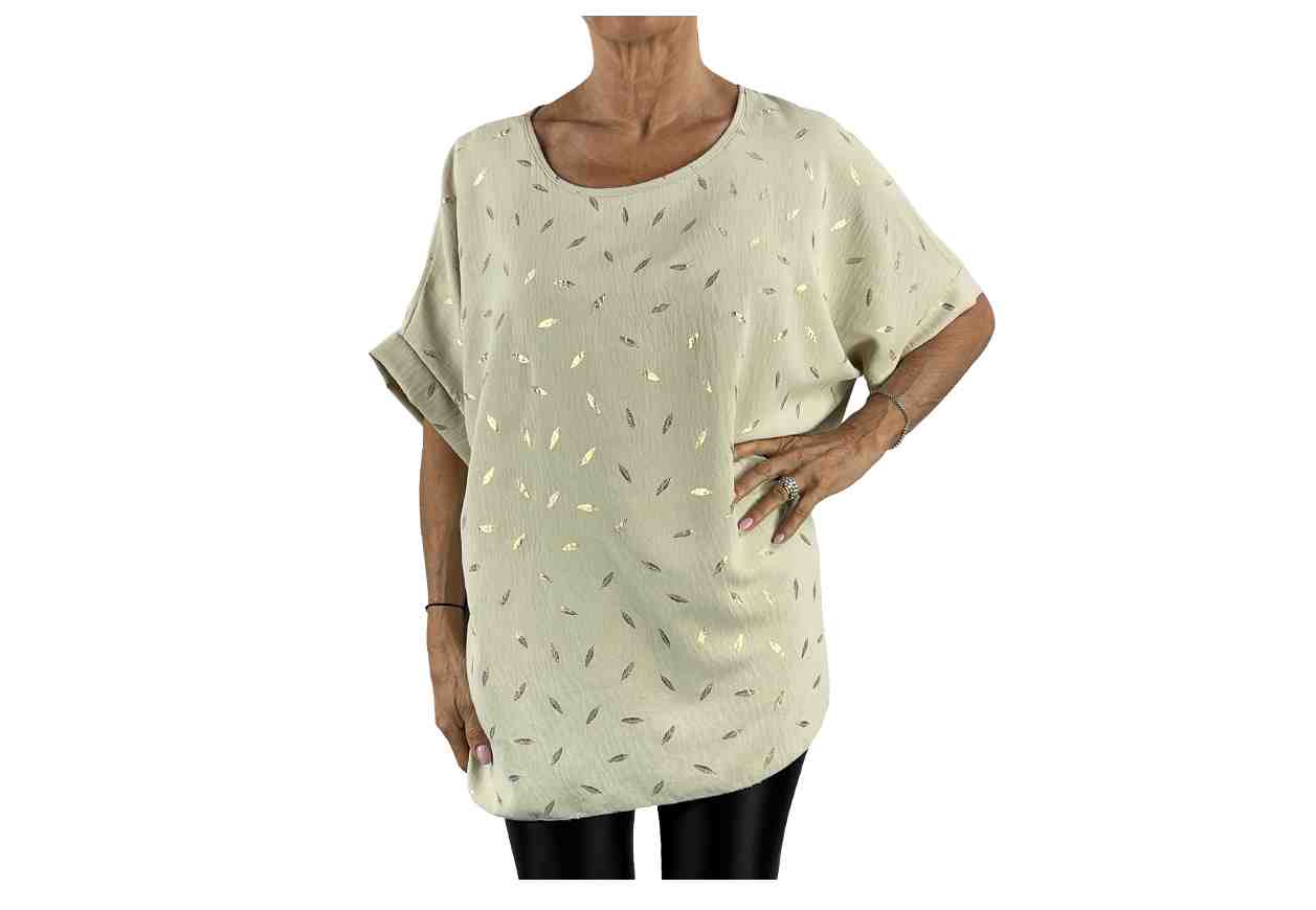 BUTTERFLY Maglia con stampa piume effetto dorato con maniche corte.