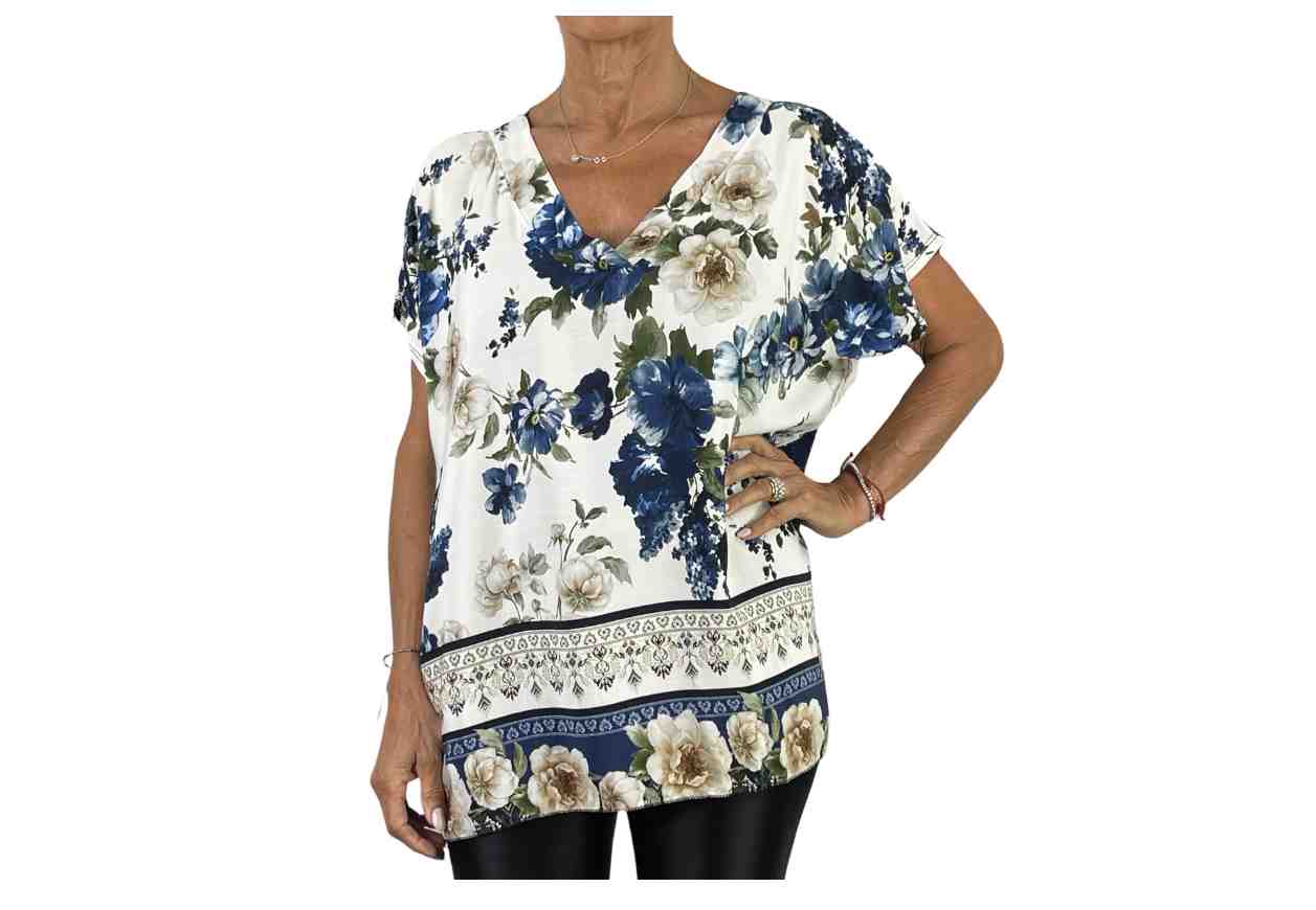 BUTTERFLY Maglia in fantasia floreale, scollo a V e maniche corte.