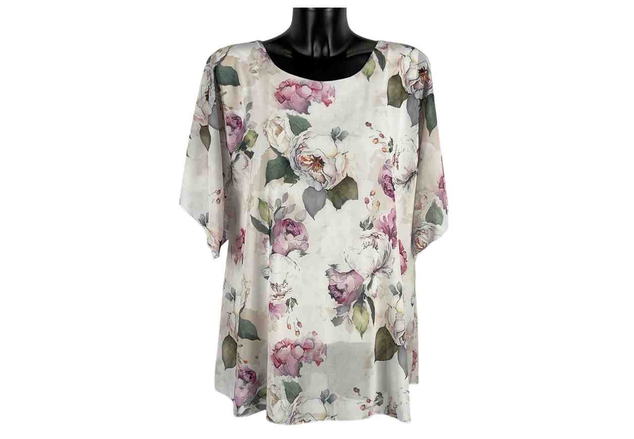BUTTERFLY Maglia in voile in fantasia floreale, manica corta e fodera interna.