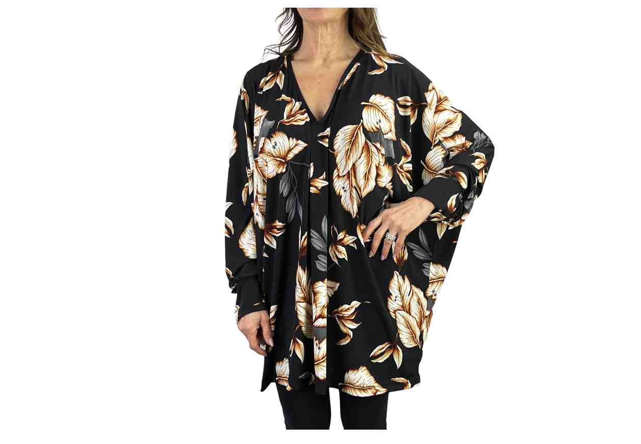 BUTTERFLY Maxi maglia in fantasia floreale con scollo a V e manica a pipistrello.