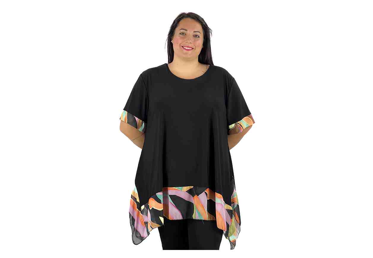 BUTTERFLY Maxi maglia in tinta unita con profili in voile in fantasia multicolor.