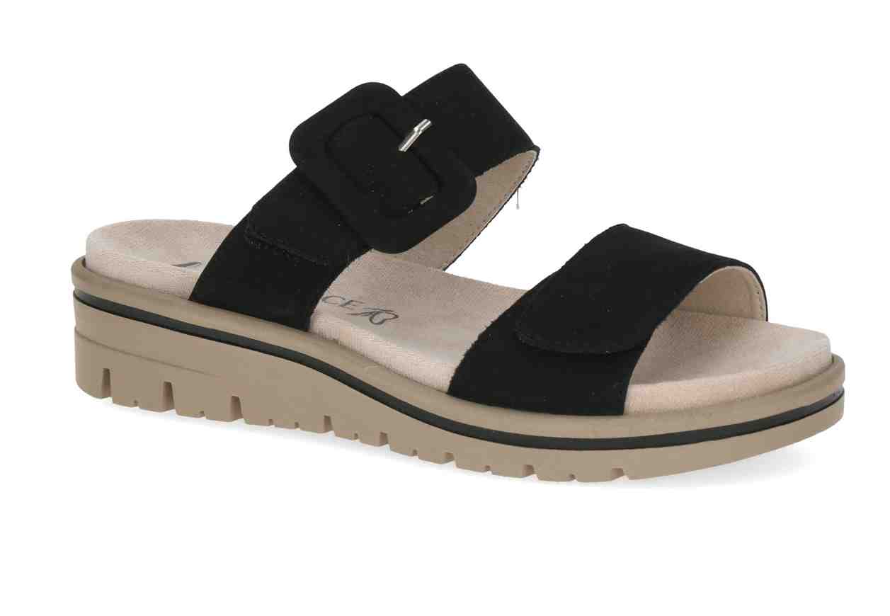 CAPRICE Sabot in pelle con doppio velcro, inserto in simil fibbia.