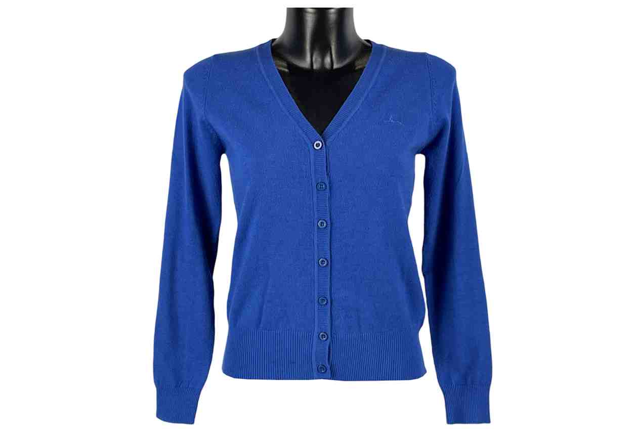 Cardigan in 52% viscosa, 26% poliestere, 22% nylon.