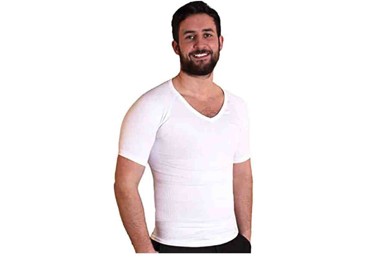 CASA ITALIA T-Shirt da uomo, tinta unita, scollo a V effetto snellente.