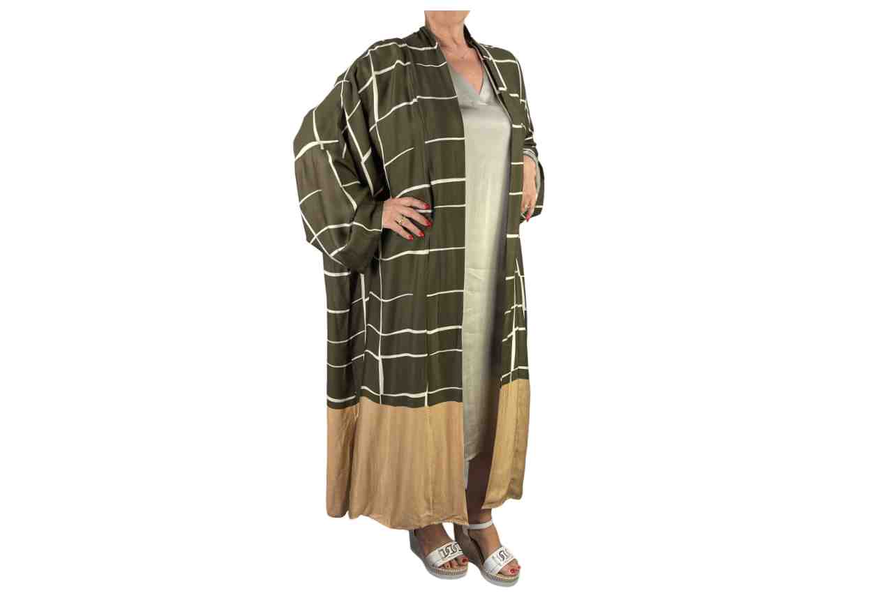 DEJA' VU OVER Cardigan lungo aperto in fantasia quadri e lisca di pesce, manica a 3/4.