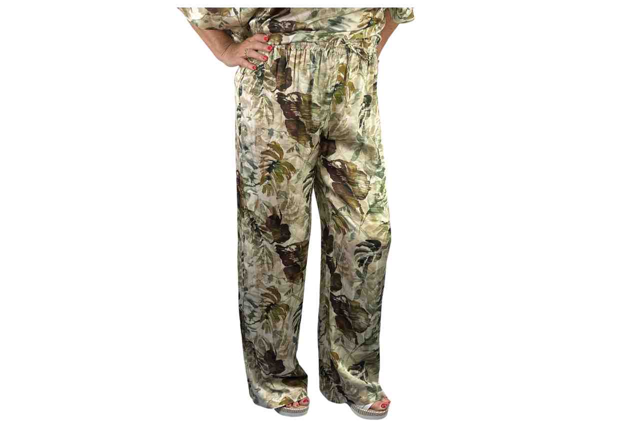 DEJA'VU OVER Pantalone ampio in fantasia foglie con elastico e coulisse in vita.