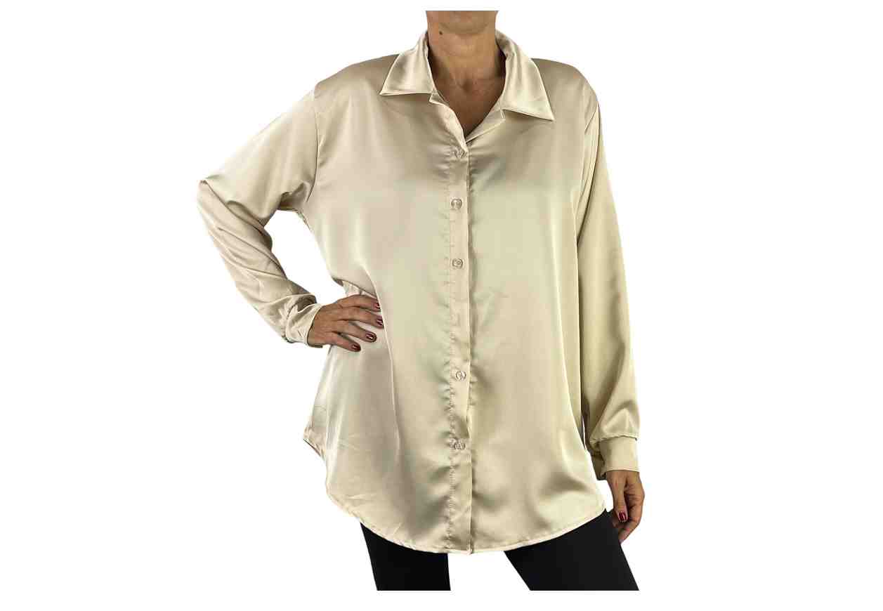 DONNA ELDA Camicia in simil raso, tinta unita, manica lunga.