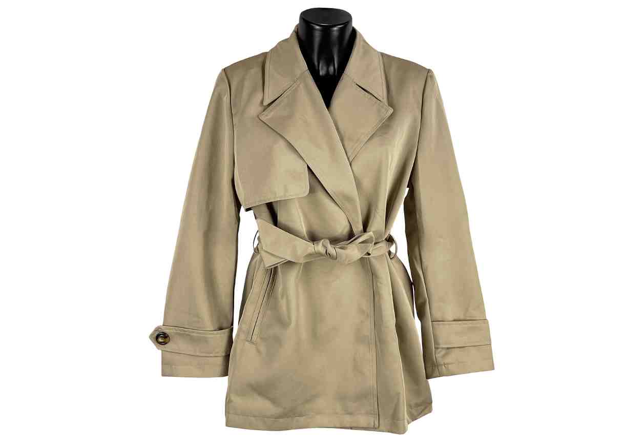Giacca doppiopetto in tinta unita con cintura in vita.
