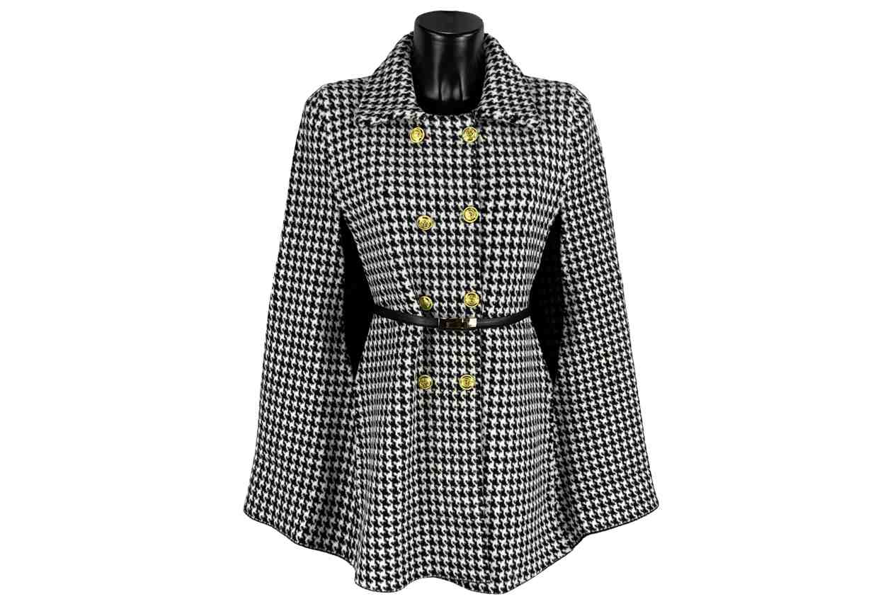 Giacca poncho in fantasia pied de poule con cintura.