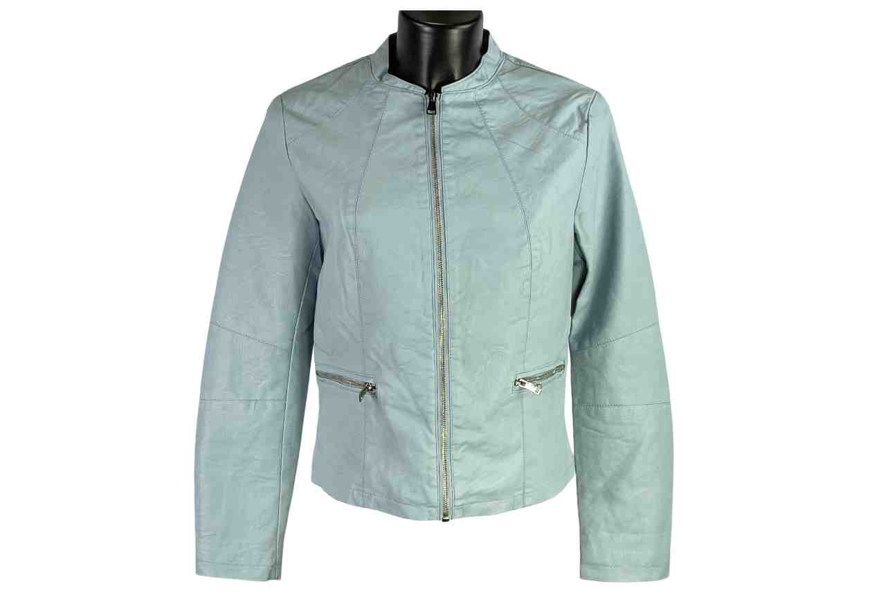 Giubbino in ecopelle foderato con full zip e tasche orizzontali.