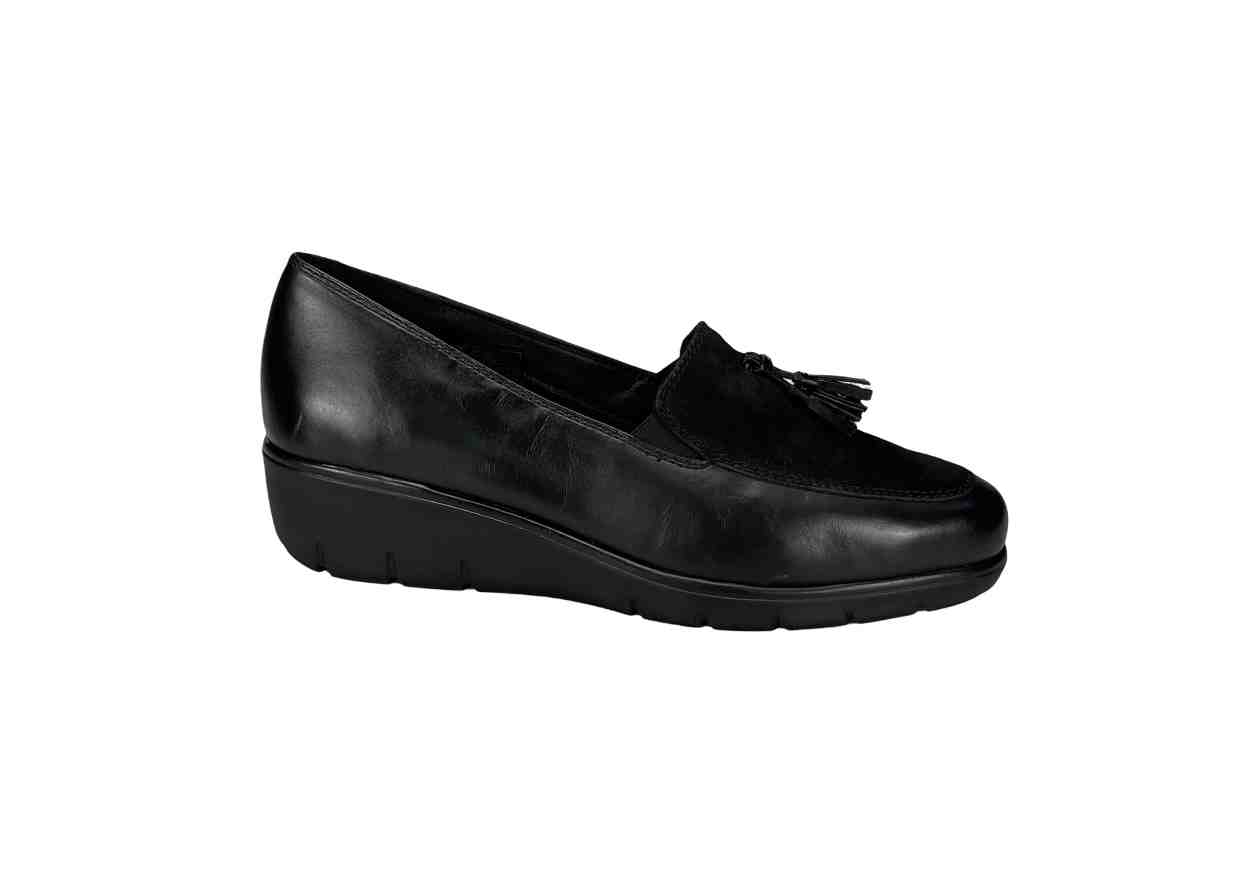 GREEN LAND Mocassino in pelle in tinta unita con nappina frontale e tacco a zeppa.