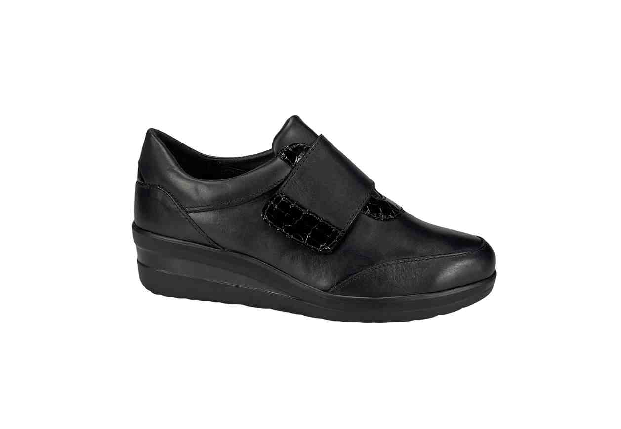 GREEN LAND Sneakers in pelle in tinta unita con tacco a zeppa con fascia strappo.