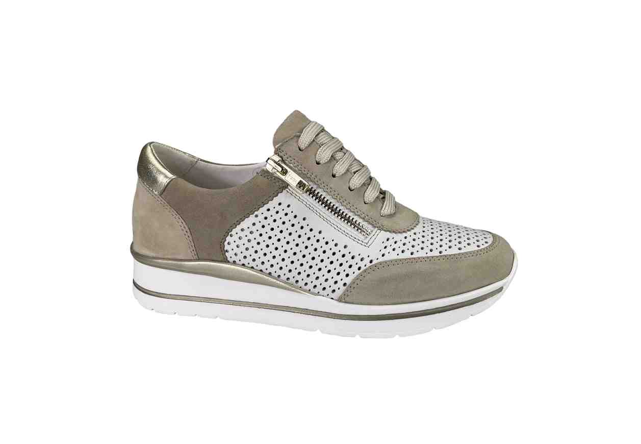 GREEN LAND Sneakers in pelle scamosciata e traforata, zip laterale con lacci frontali di chiusura e tacco a zeppa.