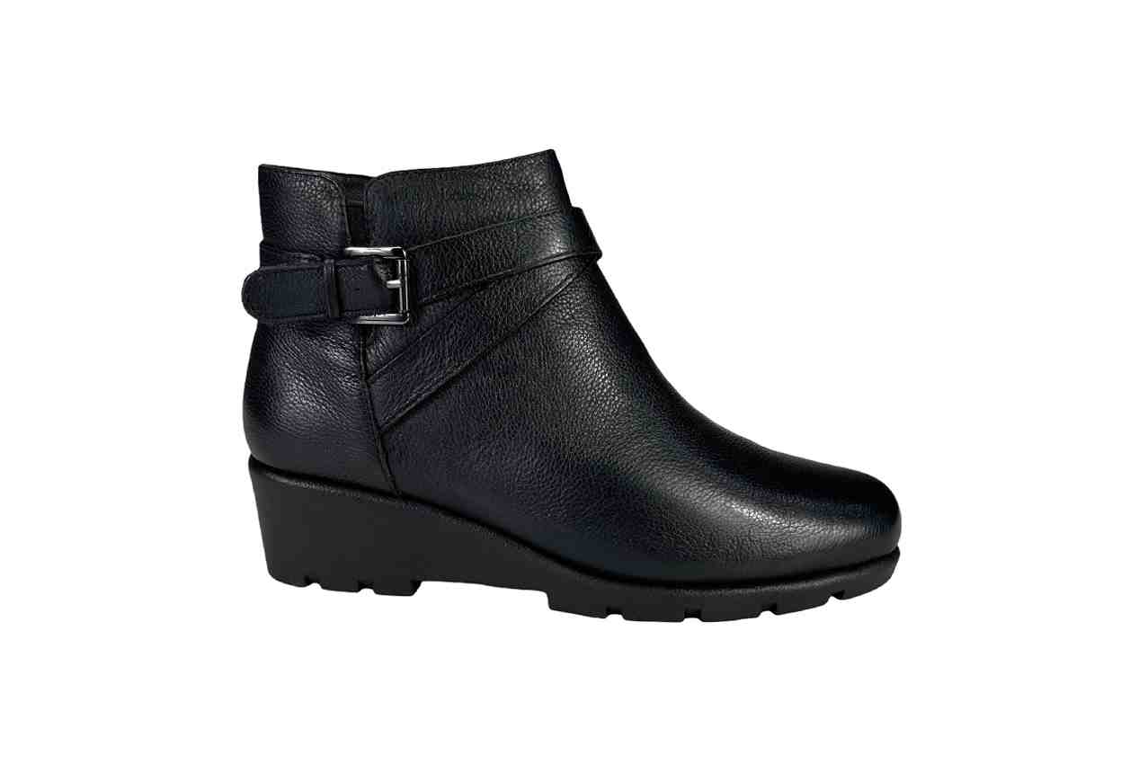 GREEN LAND Stivaletto in pelle con zip laterale e fibbia, tacco a zeppa.