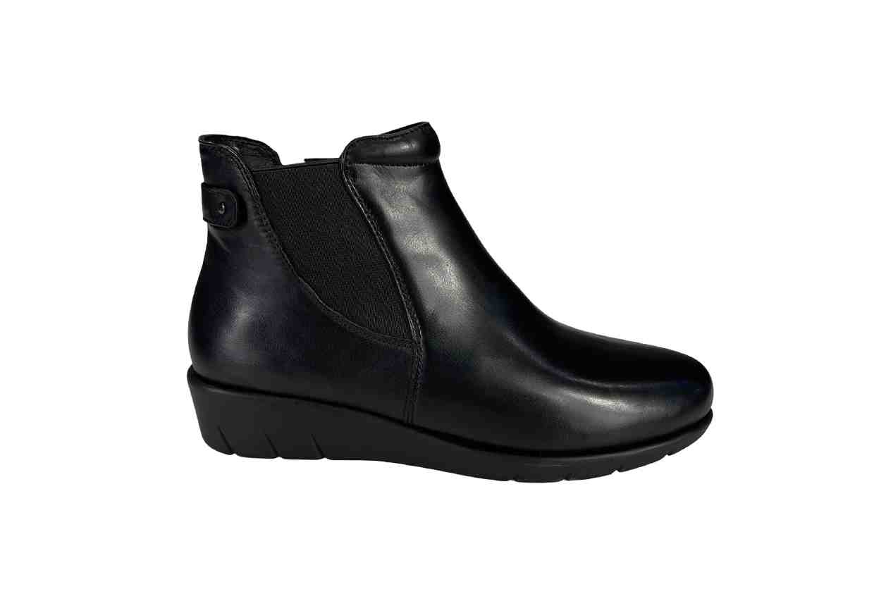 GREEN LAND Stivaletto in pelle con elastico e zip laterali, tacco a zeppa.