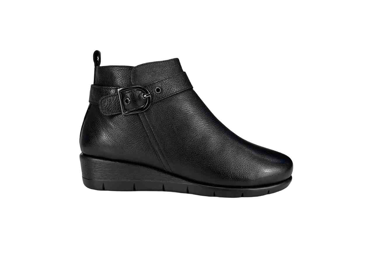 GREEN LAND Stivaletto in pelle in tinta unita con fibbia e zip laterale, tacco a zeppa.