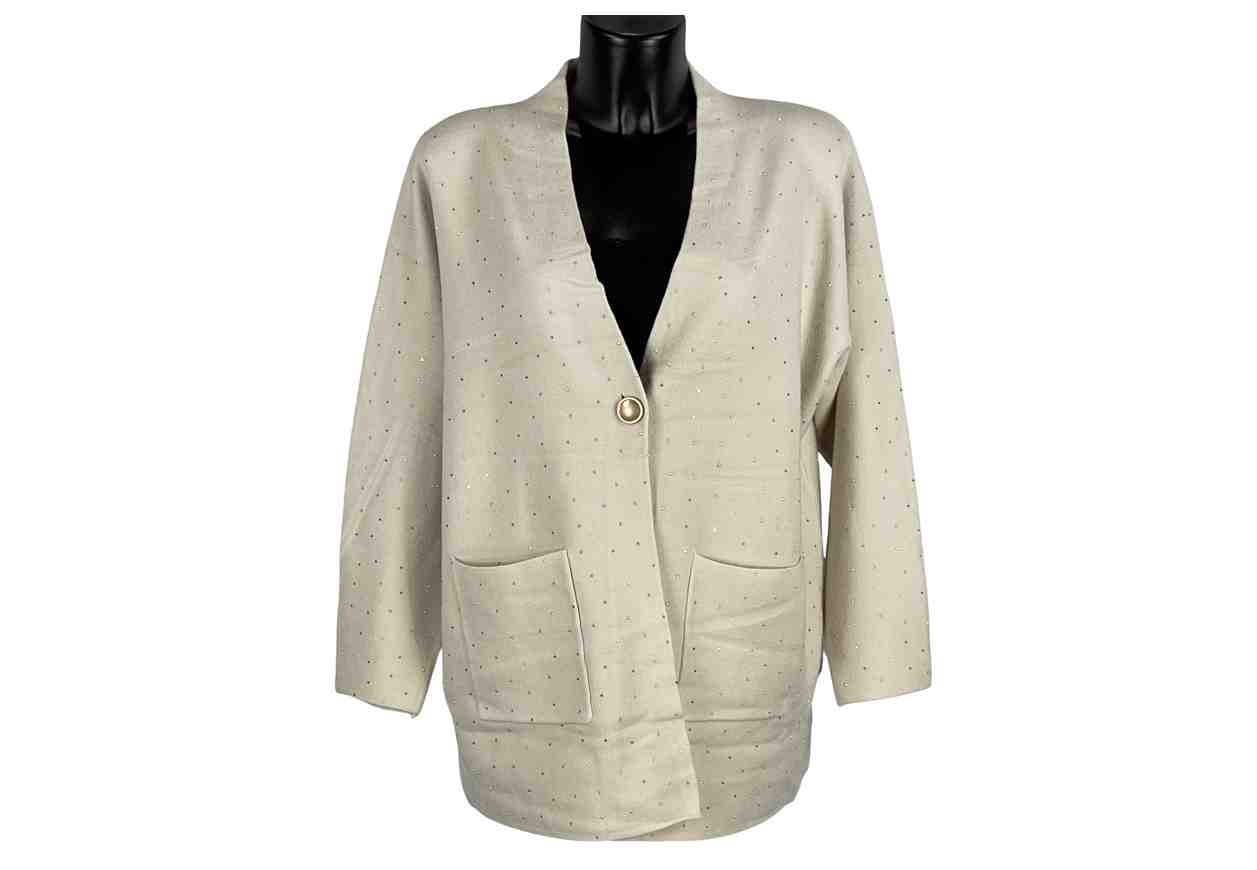 GRETA GARBO Cardigan con strass frontali, tasche e bottone frontale, tinta unita