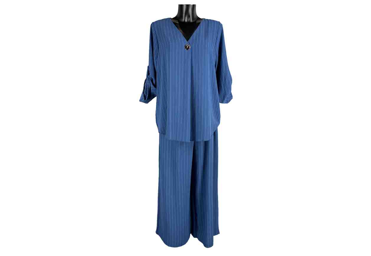 GRETA GARBO Completo a righe: blusa con botton in dettaglio su scollo a V, pantalone con tasche ed elastico in vita.
