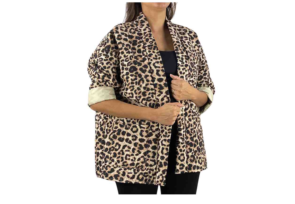 GRETA GARBO Giacca aperta in fantasia animalier con effetto trapuntato