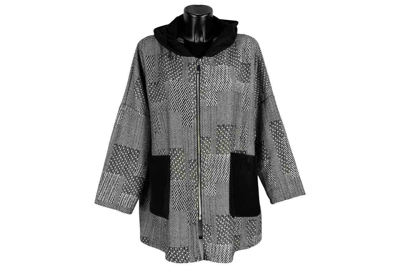 GRETA GARBO Giacca in fantasia geometrica in misto lana, cappuccio, tasche e zip frontale.
