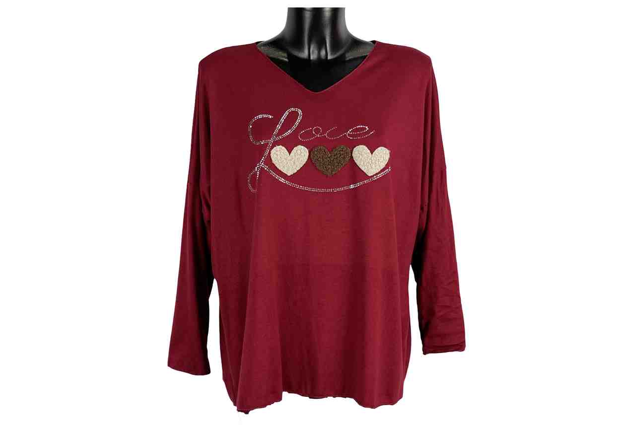 GRETA GARBO Maglia con scritta love e cuori in bouclè, scollo a V.