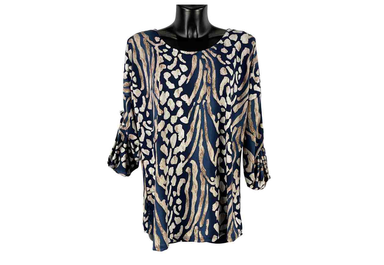 GRETA GARBO Maglia in fantasia maculata con scollo e catena sul retro, maniche regolabili.