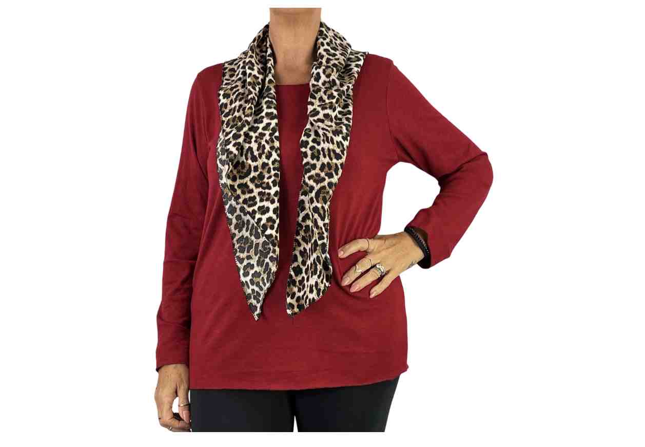 GRETA GARBO Maglia in misto lana con pashima in fantasia leopardata, tinta unita.