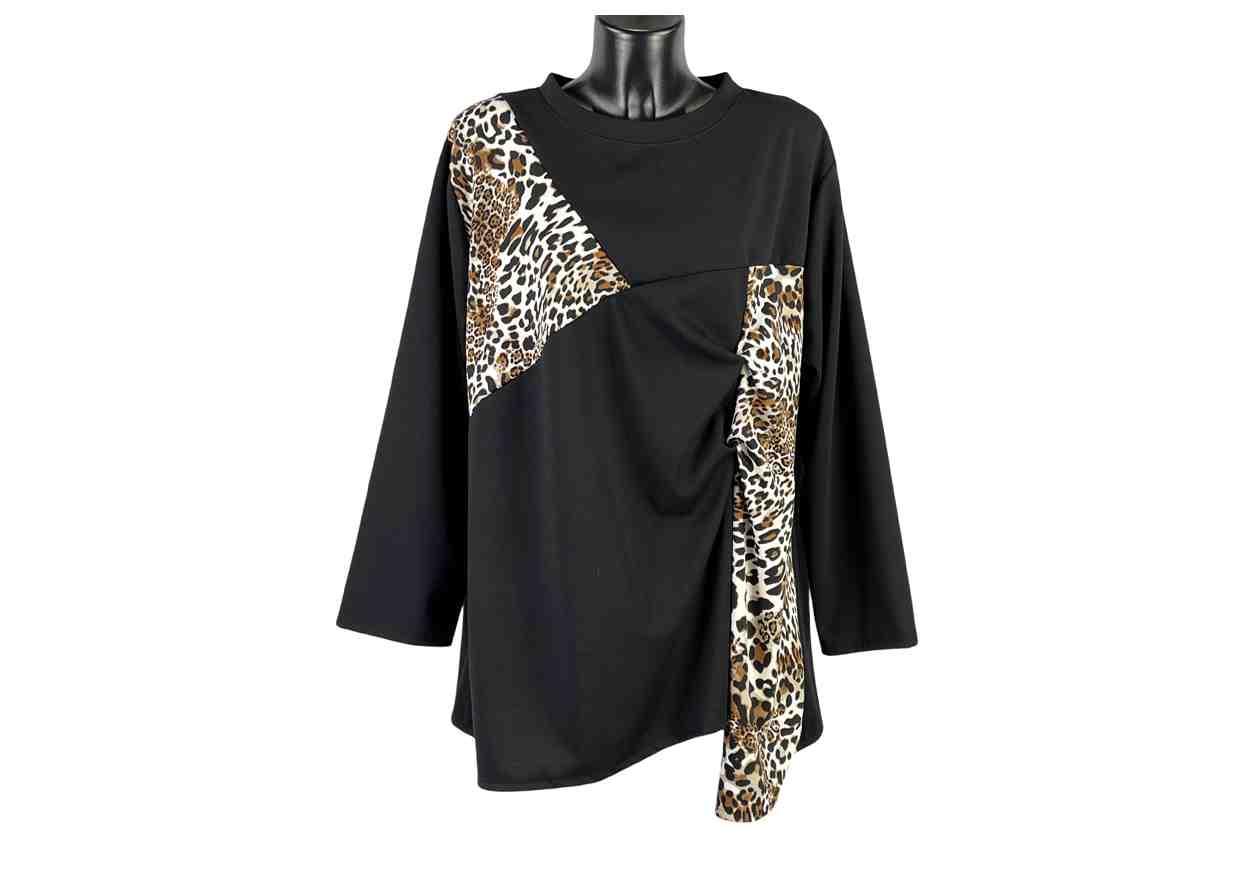 GRETA GARBO Maglia in tinta unita con inserti animalier e arricciatura frontale.