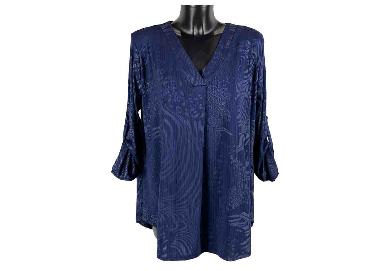 GRETA GARBO Maglia in tinta unita con lavorazione animalier tono su tono, scollo a V e manica tre quarti.