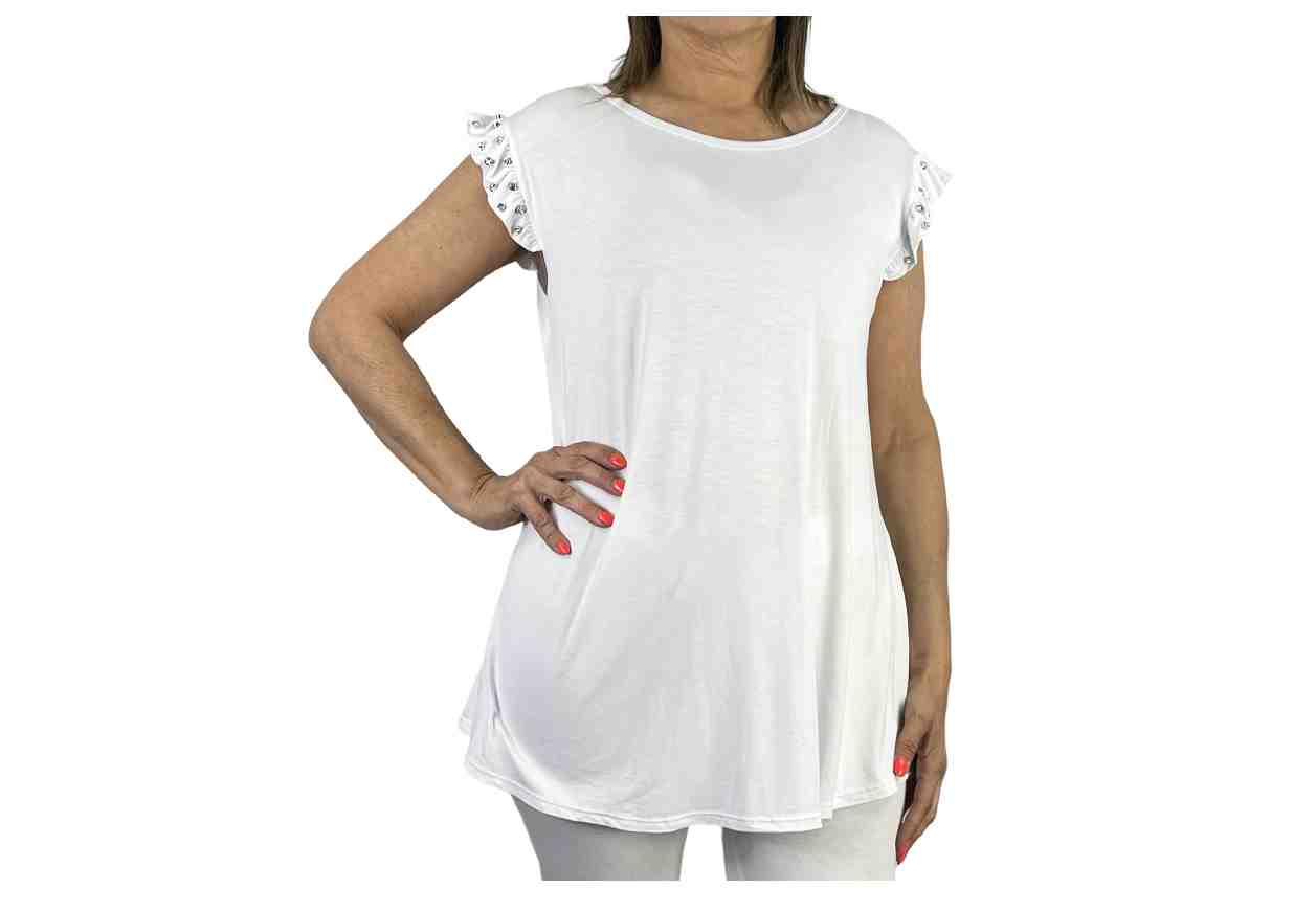GRETA GARBO Maglia smanicata in tinta unita con rouches e strass su spalle.