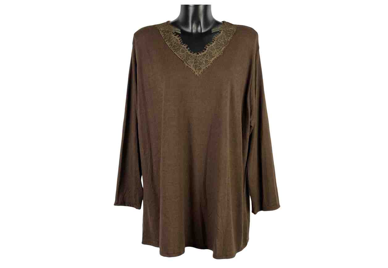 GRETA GARBO Maxi maglia in tinta unita con dettaglio in pizzo su scollo a V.