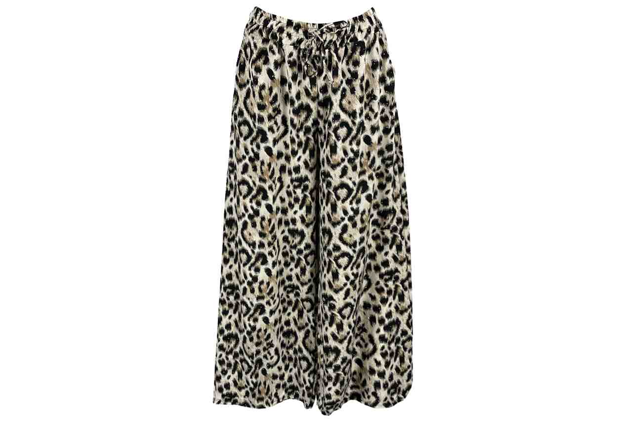 GRETA GARBO Pantalone in fantasia animalier con punti luce applicati, tasche, elastico in vita e coulisse.