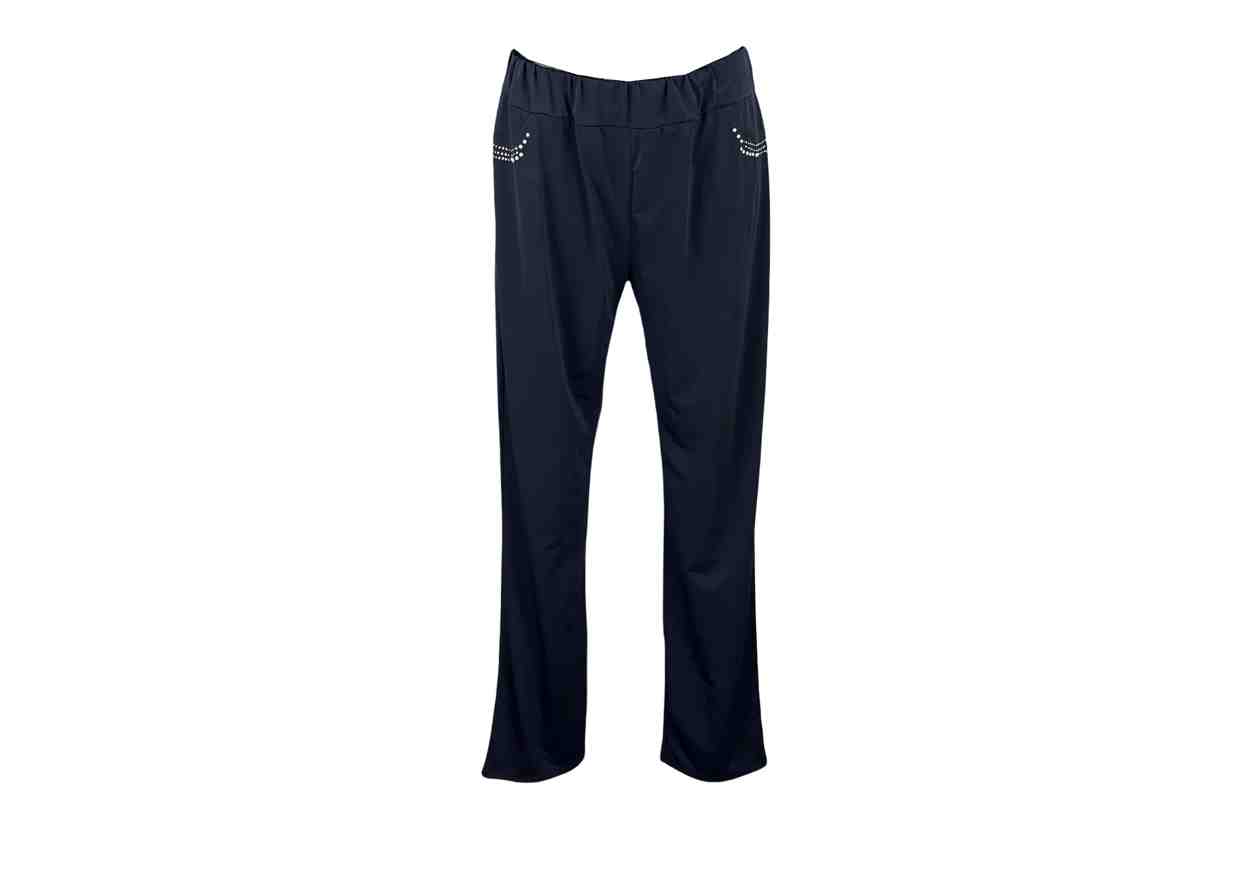 GRETA GARBO Pantalone in tinta unita con applicazioni gioiello ed elastico in vita.
