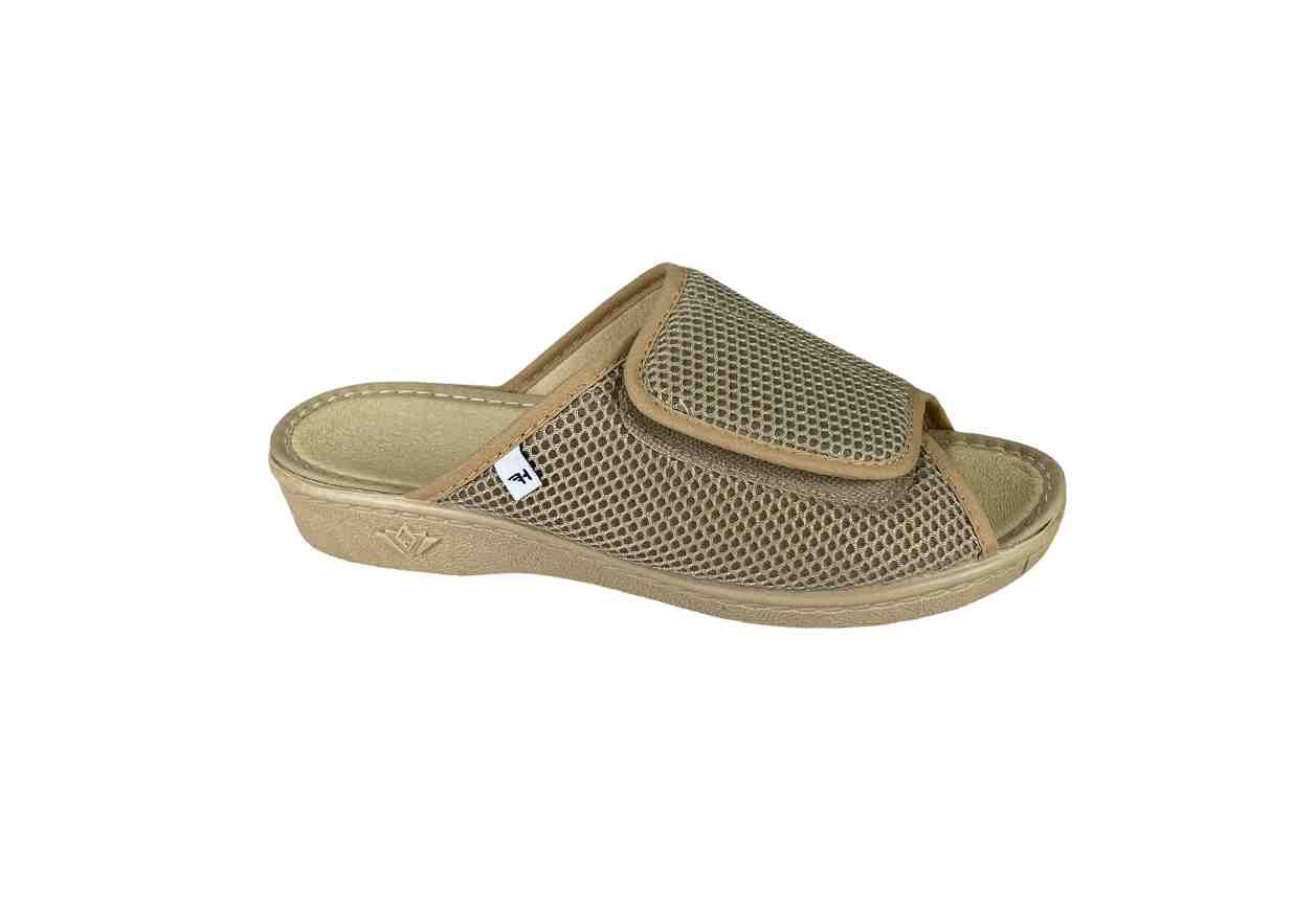 HERGOS Ciabatta con fascia centrale in tessuto traforato, chiusura con velcro, tacco a zeppa.