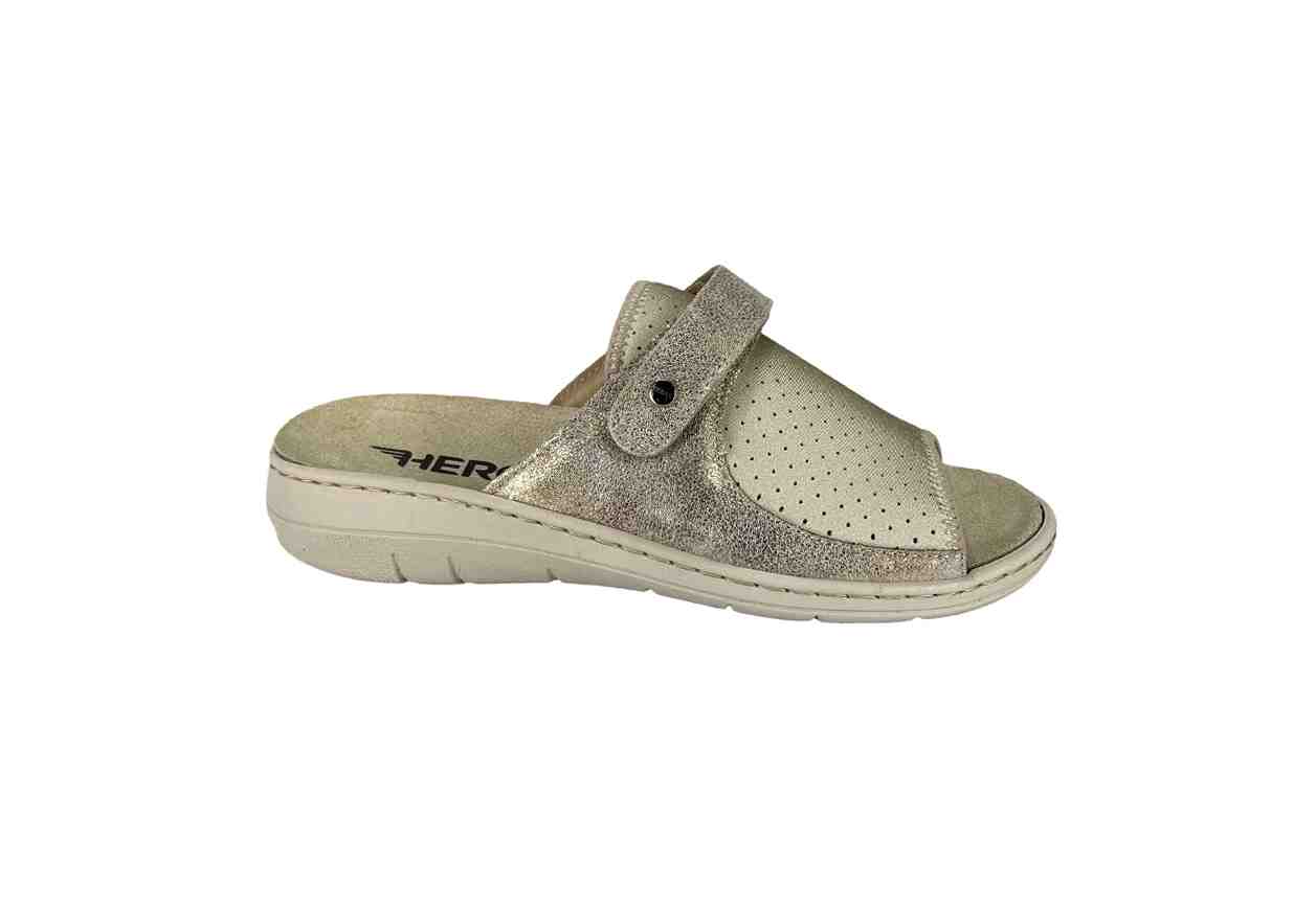 HERGOS Ciabatta in ecopelle con velcro e fascia in tessuto traforato