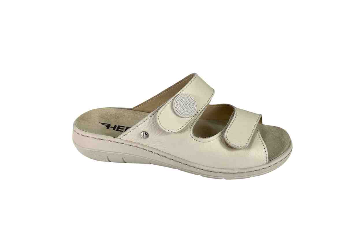 Descrizione prodotto:HERGOS Ciabatta in pelle con doppio velcro, tacco a zeppa.