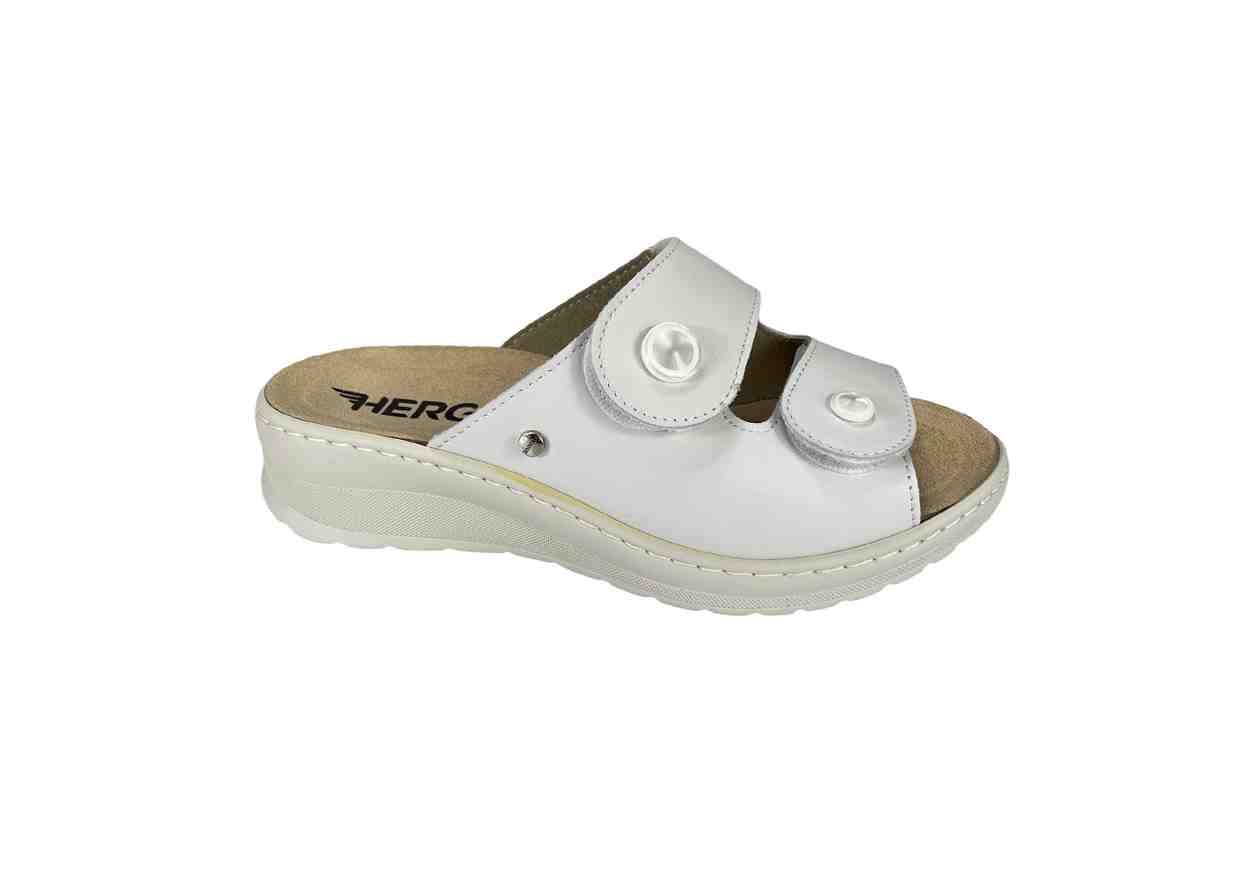 HERGOS Ciabatta in pelle con doppio velcro, tacco a zeppa.