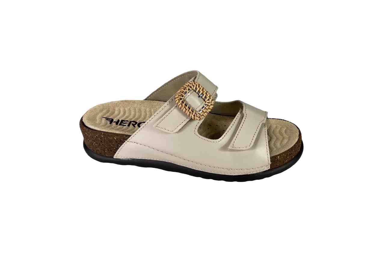 HERGOS Ciabatta in pelle con doppio velcro, dettaglio fibbia, tacco a zeppa.