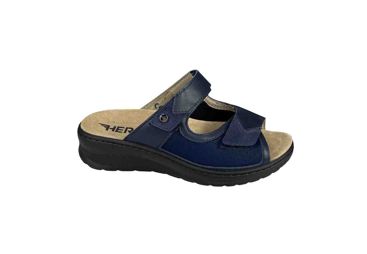 HERGOS Ciabatta in pelle e tessuto, chiusura con doppio velcro.