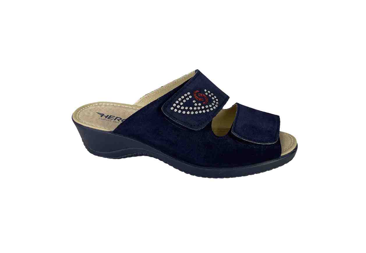 Descrizione prodotto:HERGOS Ciabatta in pelle scamosciata con doppio velcro, dettaglio luminoso, tacco a zeppa.