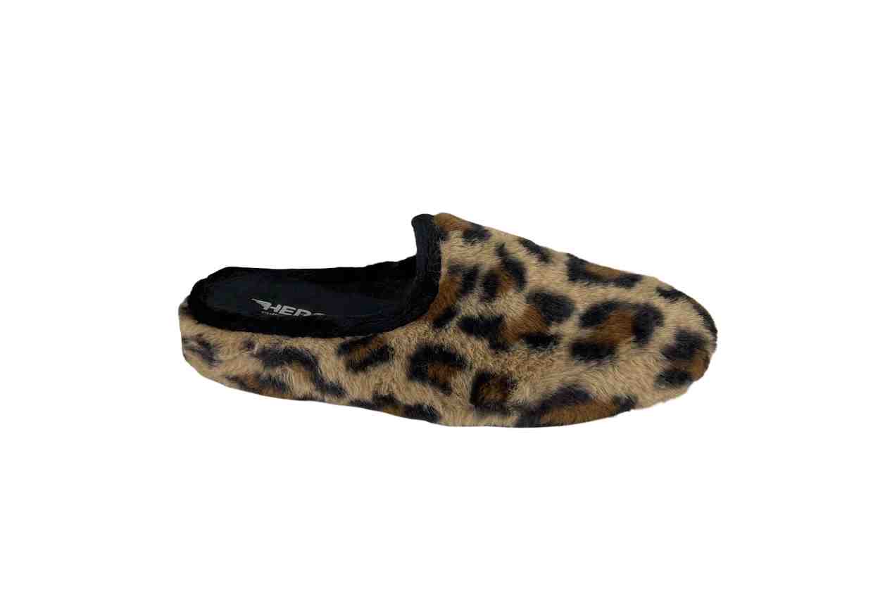 HERGOS Pantofola in ecopelliccia in fantasia maculata.