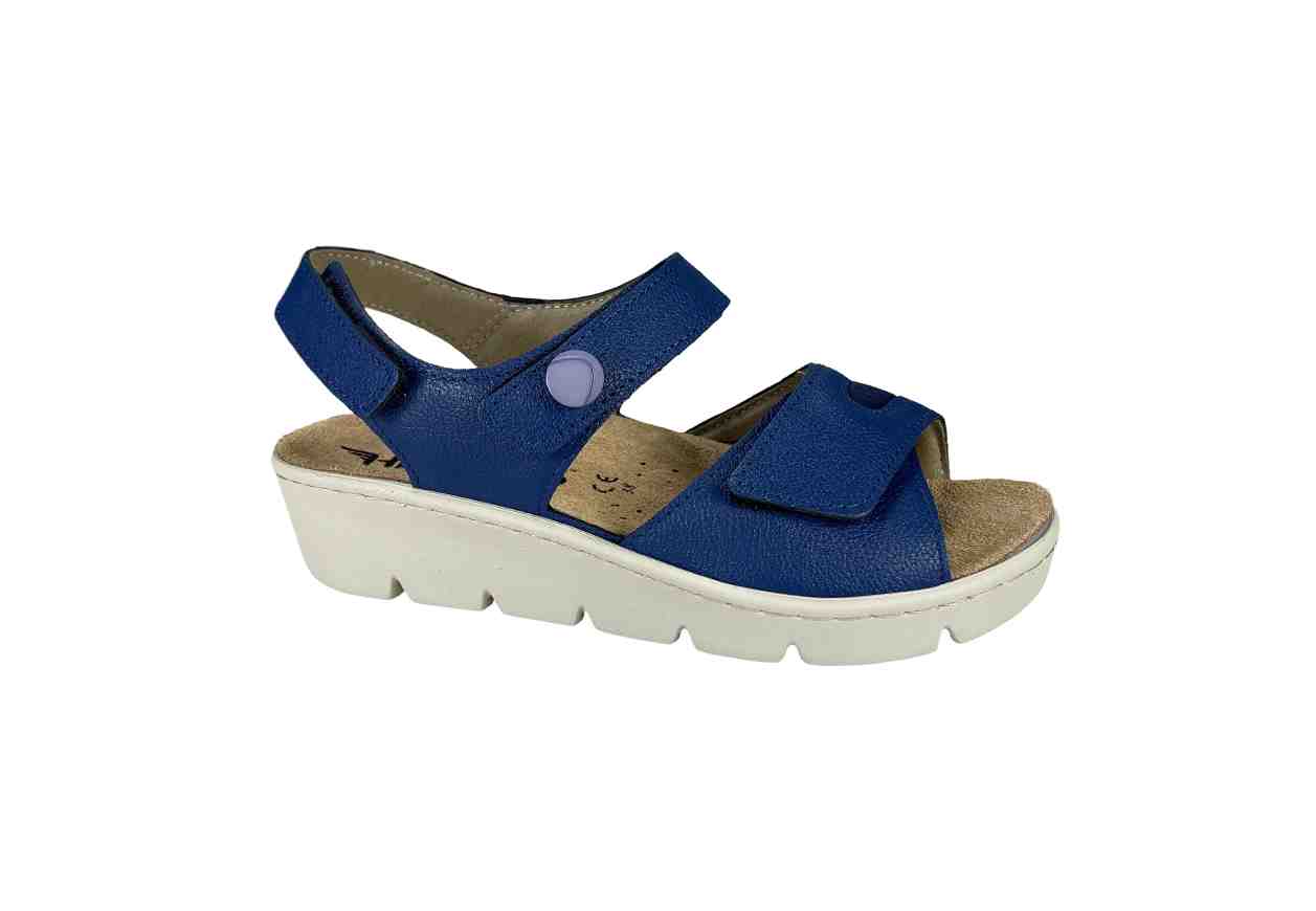 Descrizione prodotto:HERGOS Sandalo a incrocio in pelle con doppio con velcro, tacco a zeppa.